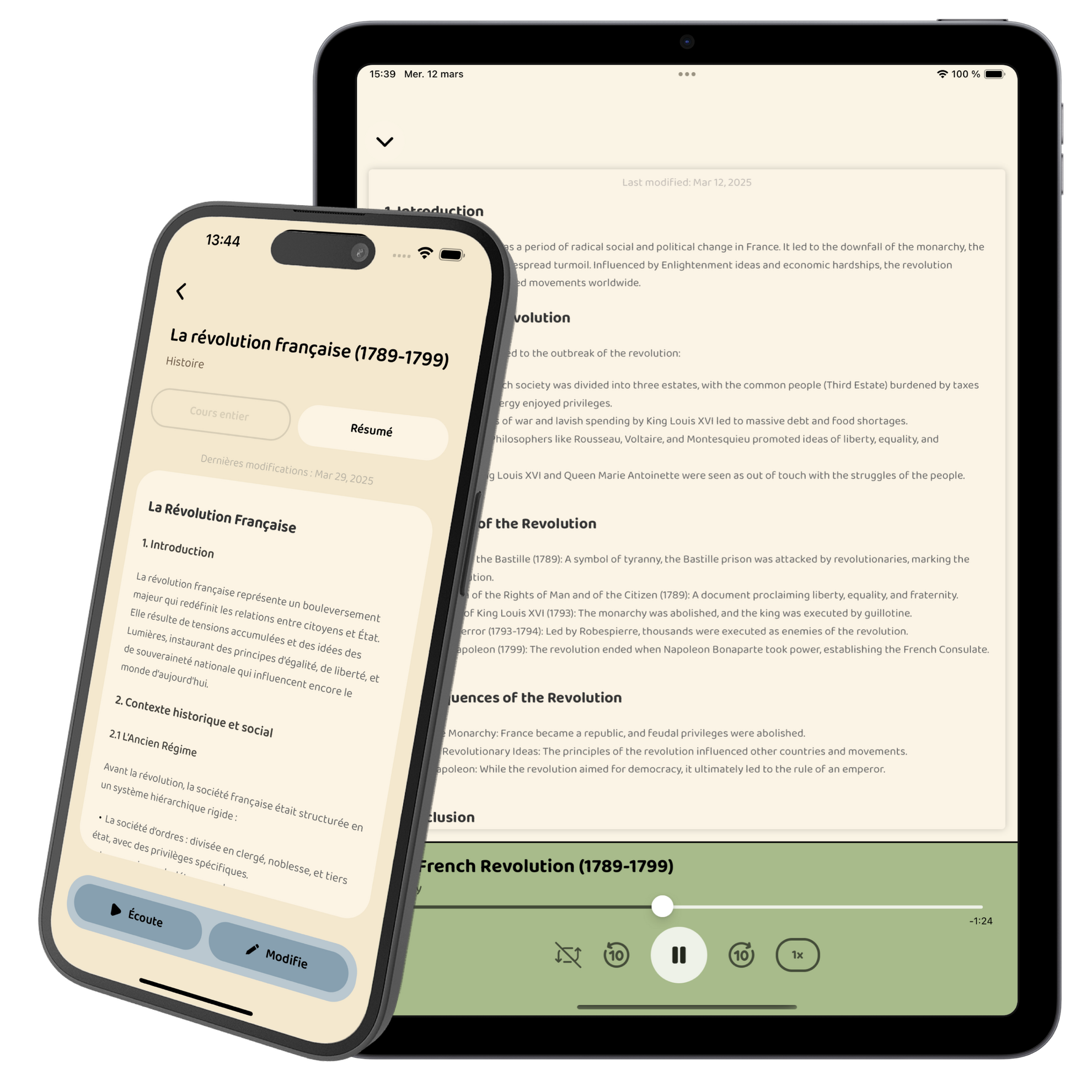 Transforme tes notes en podcasts et apprends où tu veux.
