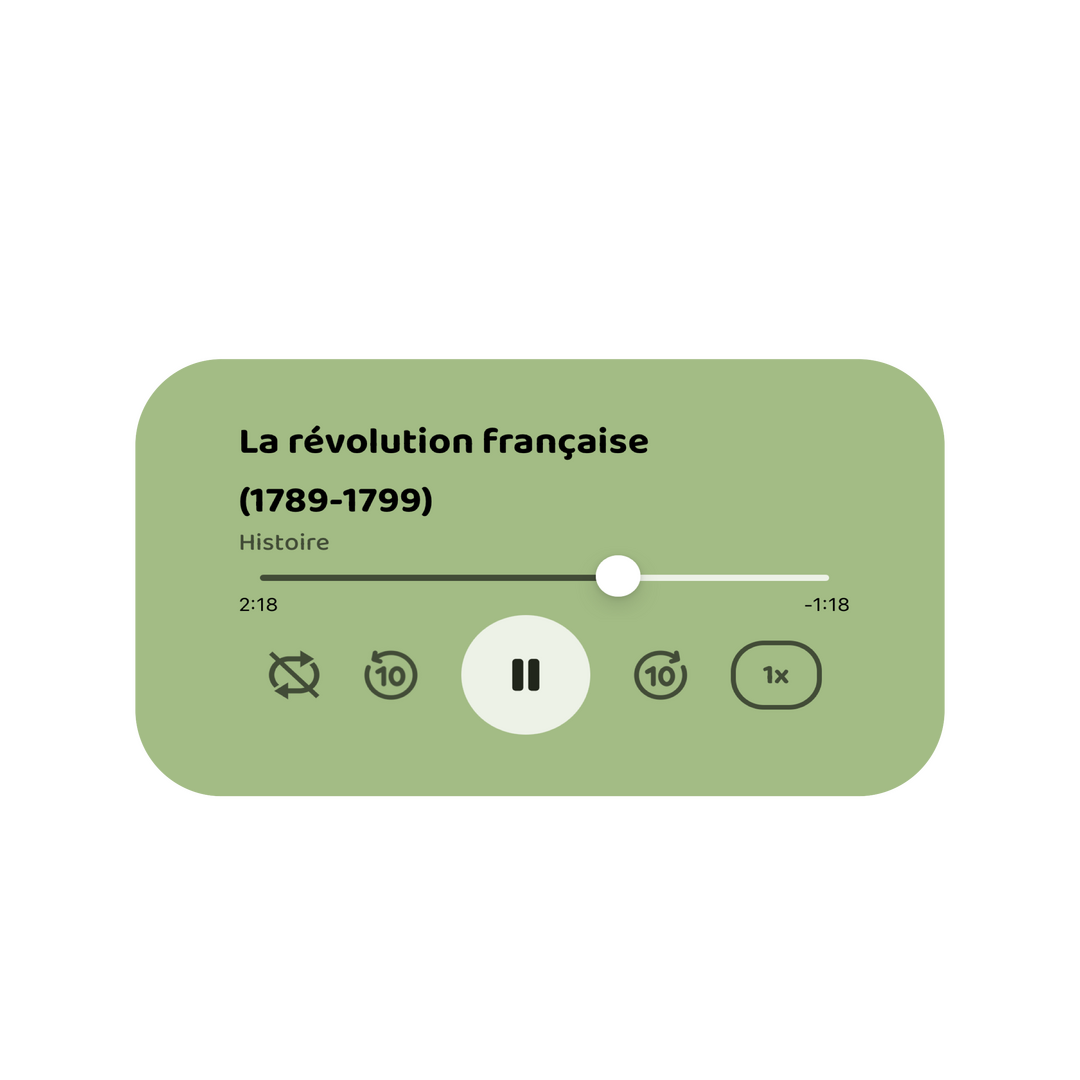 Poddia transforme tes notes de cours en audio personnalisé pour t’aider à apprendre plus vite, où que tu sois.