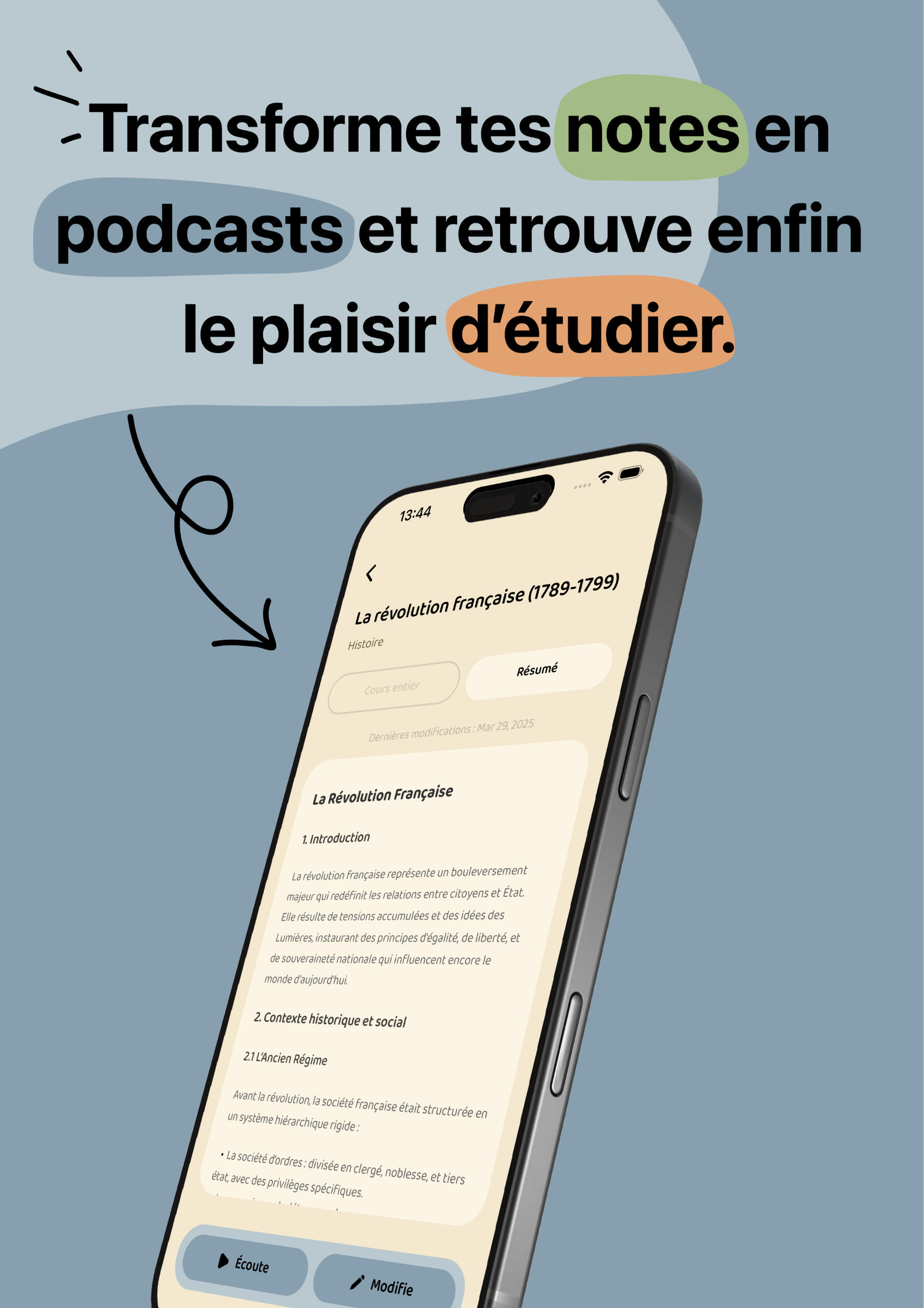 Transforme tes notes en podcasts et apprends où tu veux.
